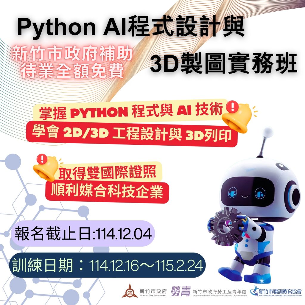 | 114/12/7 | Python AI深度學習應用設計訓練班 | 薛祥元 | 日白天 |