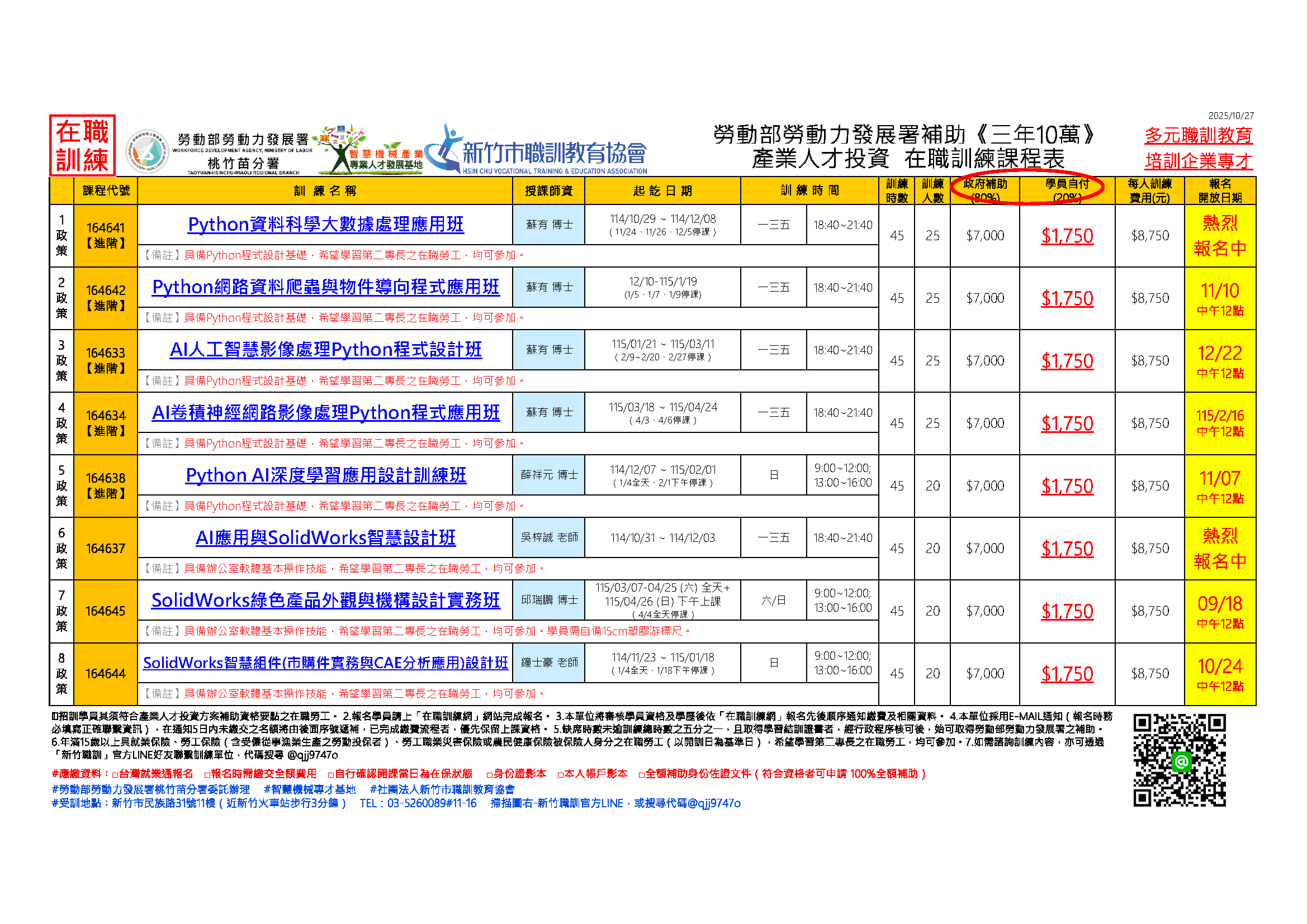 詳細課程時間與停課資訊,請點擊下方【補助課程資訊】按鈕,